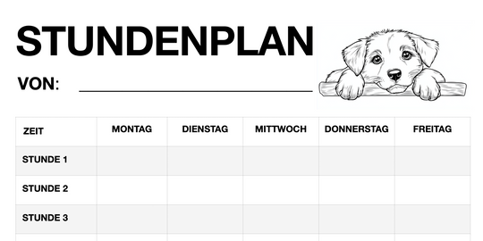 Stundenplan für Schüler - Motiv: Hunde (PDF, sofort ausdruckbar)