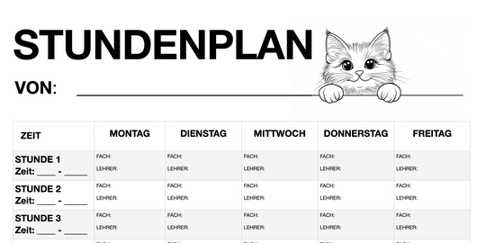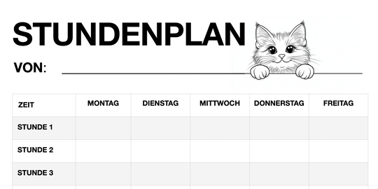 Stundenplan für Schüler - Motiv: Katze (PDF, sofort ausdruckbar)