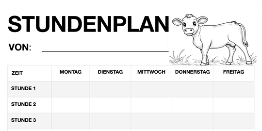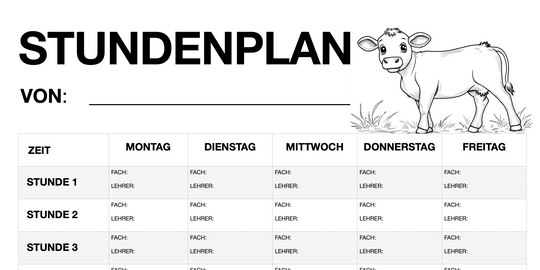 Stundenplan für Schüler - Motiv: Kühe (PDF, sofort ausdruckbar)