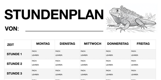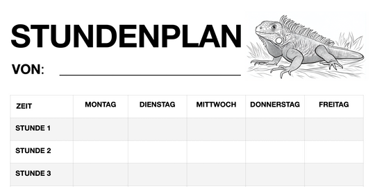 Stundenplan für Schüler - Motiv: Leguane (PDF, sofort ausdruckbar)