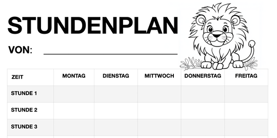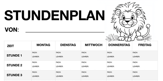 Stundenplan für Schüler - Motiv: Löwe (PDF, sofort ausdruckbar)