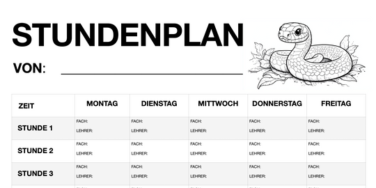 Stundenplan für Schüler - Motiv: Schlange (PDF, sofort ausdruckbar)