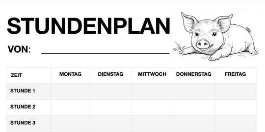 Stundenplan für Schüler - Motiv: Schweine (PDF, sofort ausdruckbar)