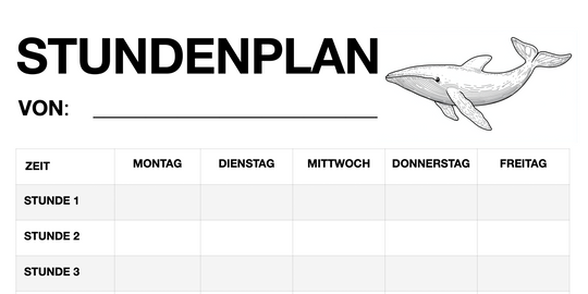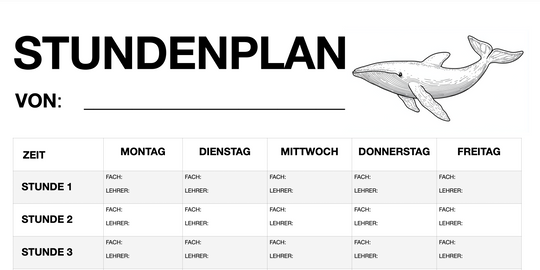 Stundenplan für Schüler - Motiv: Wal (PDF, sofort ausdruckbar)